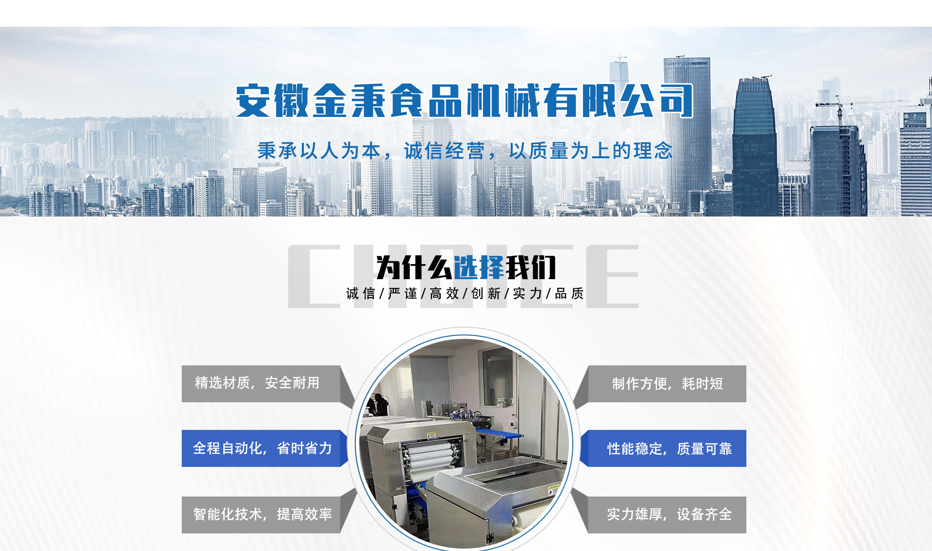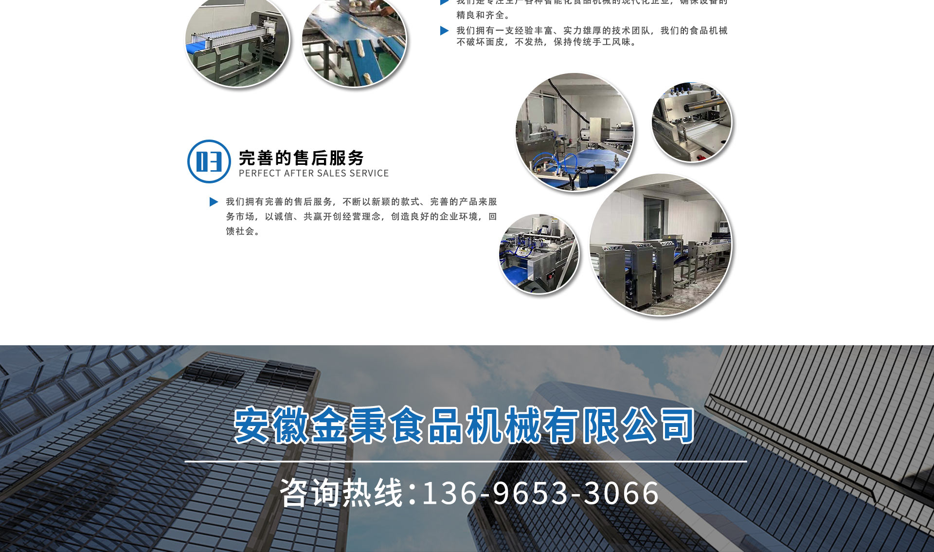 金秉食品機械有限公司是一家專業從事食品機械研制、開發、生產、銷售、集科、工、貿為一體的現代化企業。本公司以客戶需求為導向、技術創新為源泉,不斷研制出符合行業特性、實用性強、適合市場需求的高新技術產品。公司擁有健全的技術、生產、質檢銷售和售后體系,可根據客戶需求進行個性化定制,提供食品工藝技術支持。